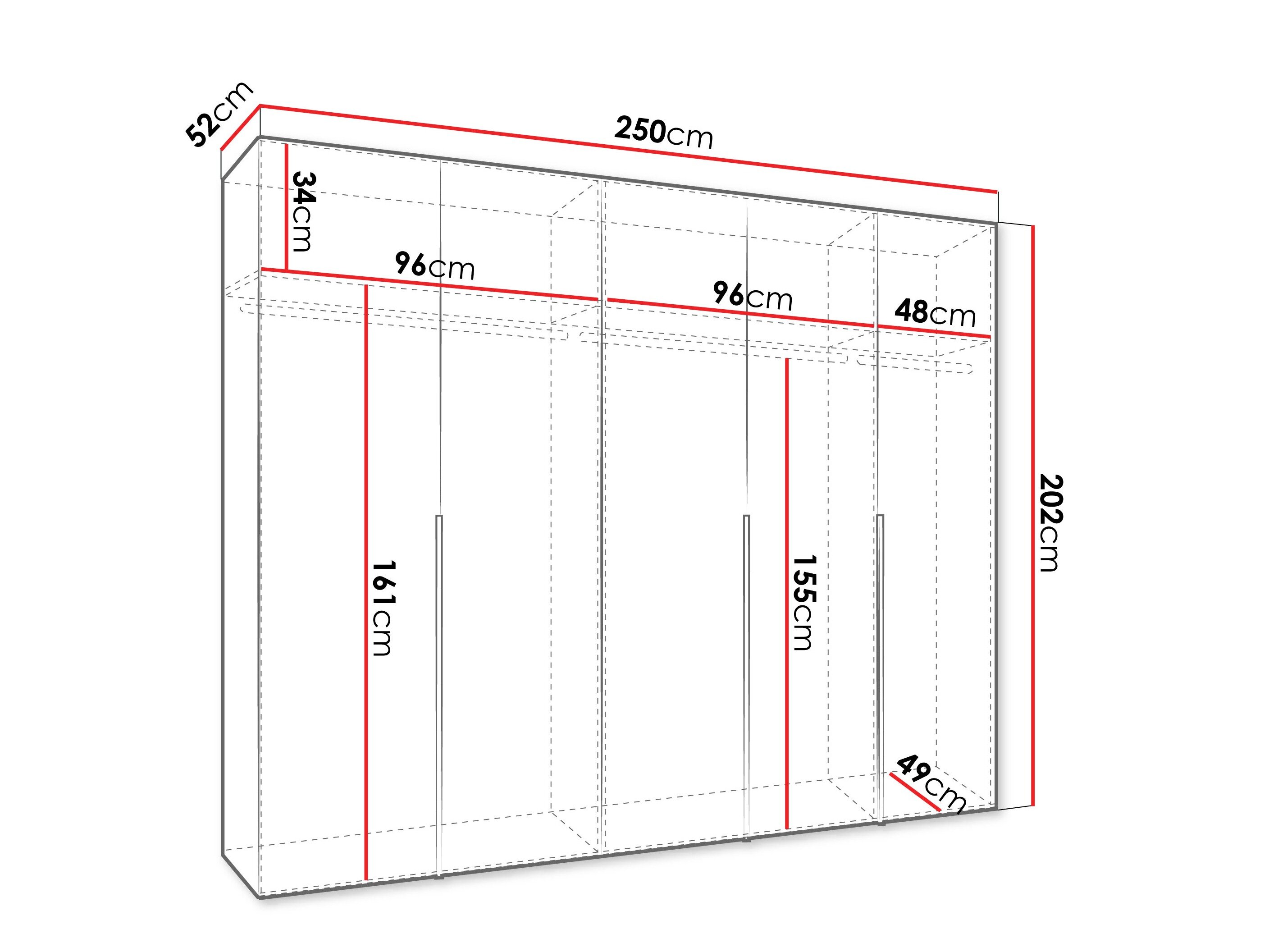 202 cm  250 cm  52 cm