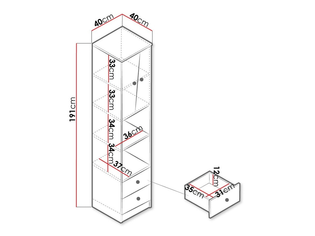 Informations sur la fixation au mur. Les meubles suspendus ou fixés au mur ne sont pas livrés avec des vis de fixation, vous devez donc vous en occuper individuellement. Les différents types de murs nécessitent des vis spécifiques, voire des profondeurs de perçage différentes. Choisissez le matériel de fixation en fonction du poids du meuble et du type de mur (cloison sèche, maçonnerie, bois, etc.). Pour garantir la qualité et la sécurité, utilisez des vis conçues spécifiquement pour votre type de mur.