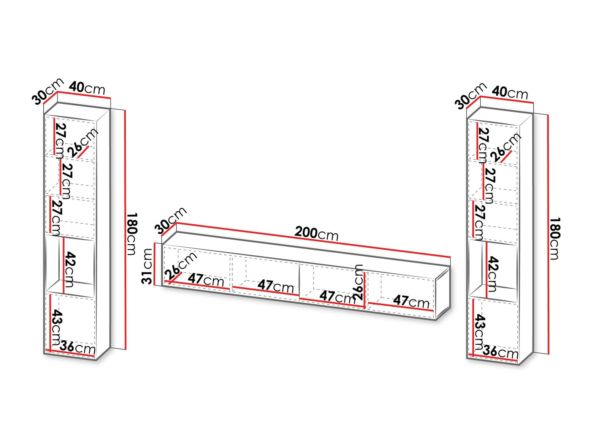 Informations sur la fixation au mur. Les meubles suspendus ou fixés au mur ne sont pas livrés avec des vis de fixation, vous devez donc vous en occuper individuellement. Les différents types de murs nécessitent des vis spécifiques, voire des profondeurs de perçage différentes. Choisissez le matériel de fixation en fonction du poids du meuble et du type de mur (cloison sèche, maçonnerie, bois, etc.). Pour garantir la qualité et la sécurité, utilisez des vis conçues spécifiquement pour votre type de mur.
