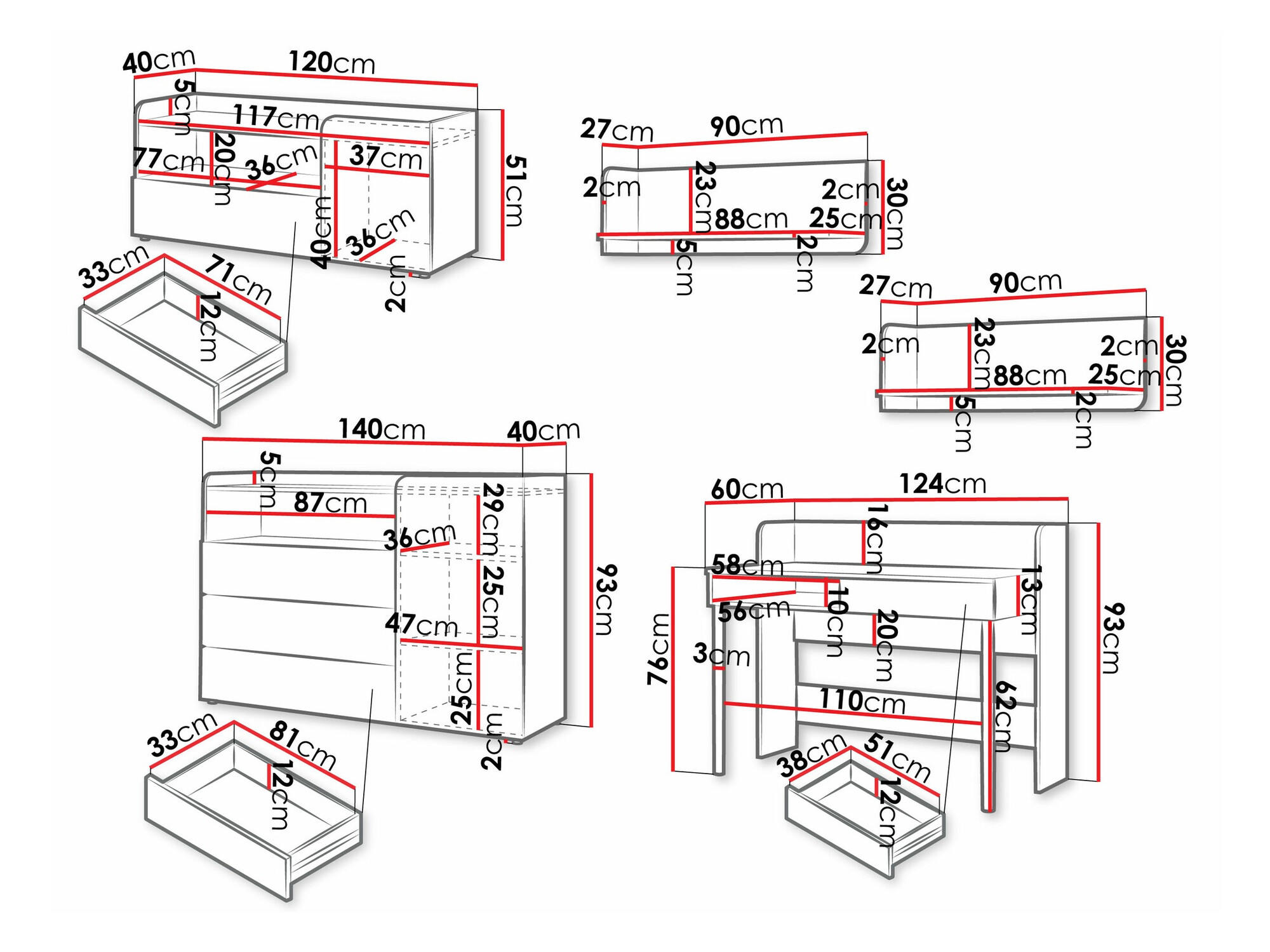 Dimensions de la commode: