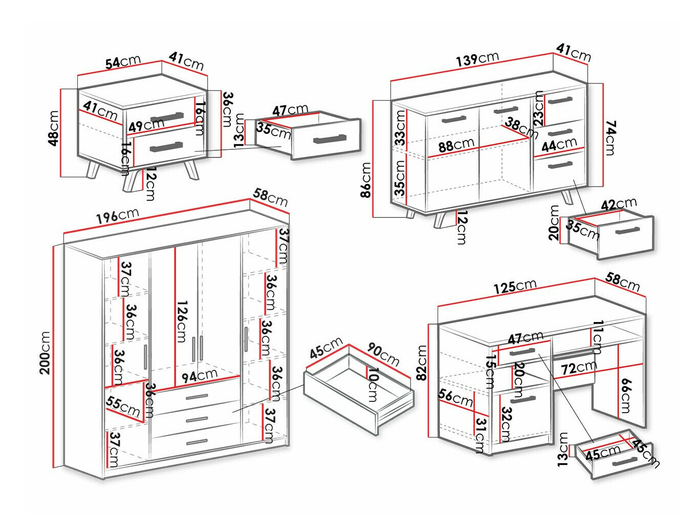 86 x 139 x 41 cm