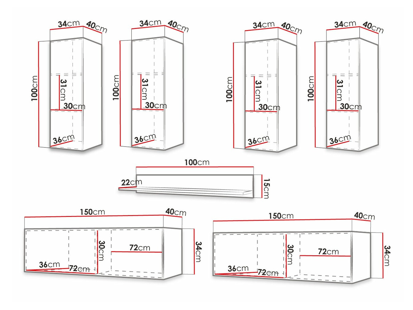 34 x 150 x 40 cm