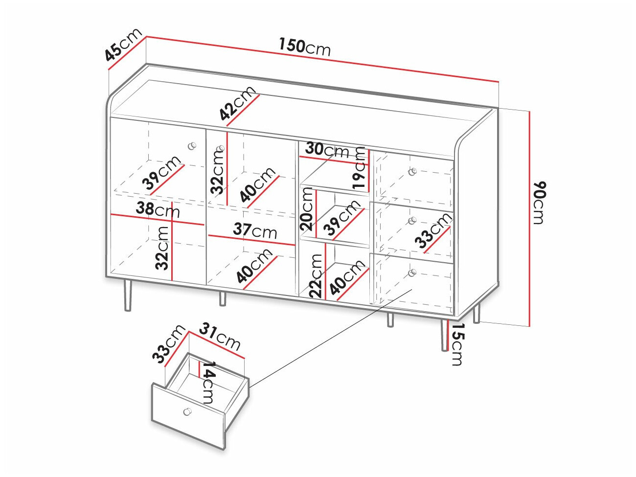 Subtilité, élégance, et une touche rétro - voilà comment on peut décrire brièvement cette collection. La forme élégante et la combinaison luxueuse du chêne foncé et de la couleur noire sont ce qui donne aux meubles leur caractère unique. La collection comprend tous les meubles nécessaires pour un salon organisé. Les meubles sont fabriqués en panneaux stratifiés, dont les bords sont protégés par un ruban ABS spécial. Grâce aux bords en ABS de haute qualité, les meubles sont plus résistants aux chocs. Les portes et les tiroirs sont dotés d'un mécanisme de fermeture silencieux, grâce auquel les tiroirs et les portes se ferment facilement sans faire de bruit. Les façades des meubles sont décorées de petites poignées métalliques noires, assorties aux meubles de cette élégante collection. Les gracieux pieds métalliques ajoutent de l'originalité et du style aux meubles de forme irrégulière. Les meubles de la collection possèdent des espaces de rangement ouverts et fermés, ils conviennent donc à l'exposition pratique des objets personnels. La partie vitrée des vitrines est en verre trempé. Sa résistance est 5 à 6 fois supérieure à celle du verre ordinaire, non traité thermiquement. Ce type de meuble est idéal pour exposer des décorations, de la vaisselle ou des photos. De plus, ce meuble peut être illuminé par un éclairage LED, qui peut être commandé en supplément. De plus, les vitrines sont universelles, il est donc possible de décider du sens d'ouverture des portes avec verre lors de leur montage. Créez un salon unique à partir de meubles individuels de la collection ou choisissez parmi les ensembles de meubles préfabriqués. Avec les meubles de cette collection, l'espace souhaité deviendra une oasis de confort et d'élégance.