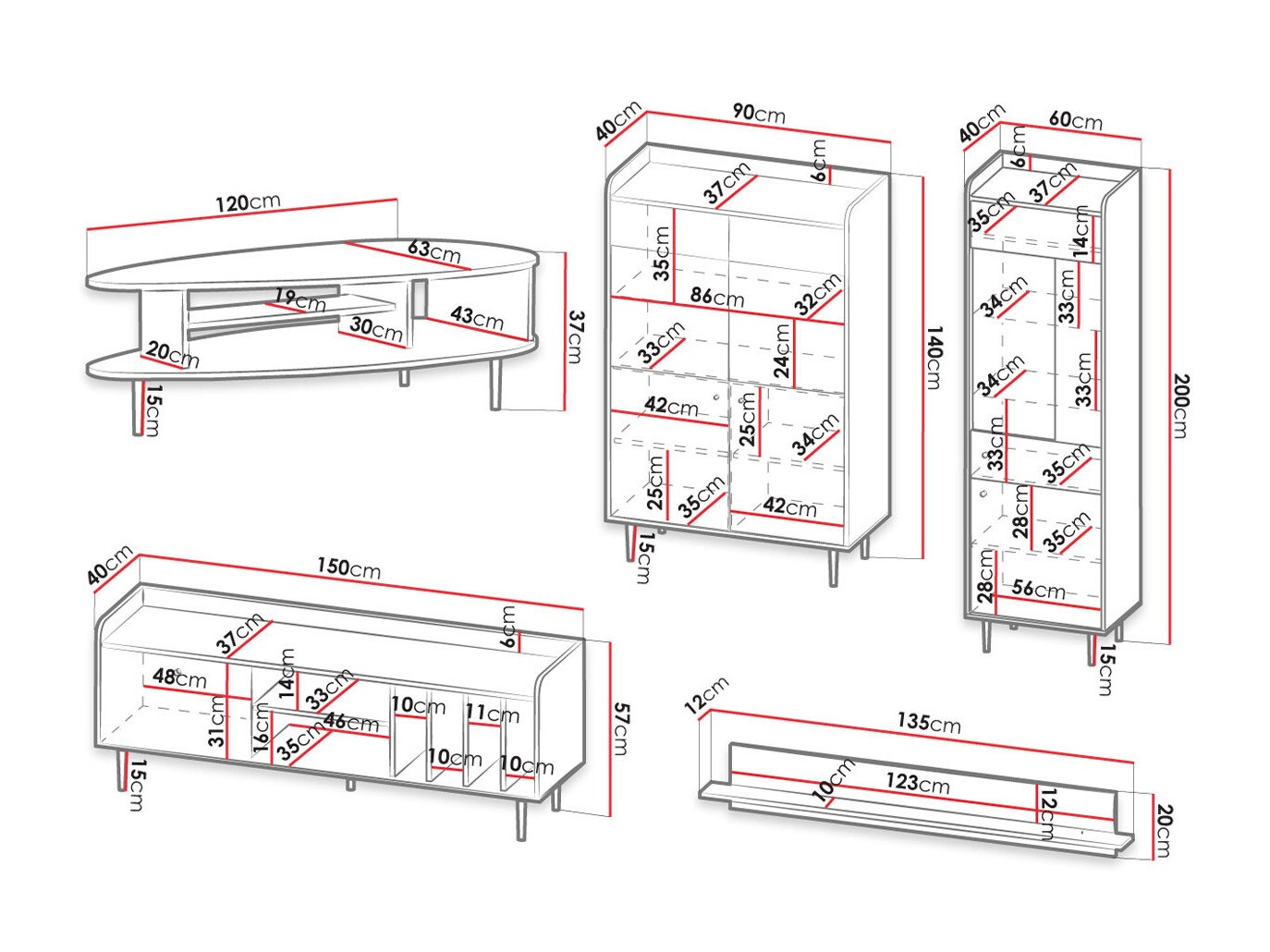 Subtilité, élégance, et une touche rétro - voilà comment on peut décrire brièvement cette collection. La forme élégante et la combinaison luxueuse du chêne foncé et de la couleur noire sont ce qui donne aux meubles leur caractère unique. La collection comprend tous les meubles nécessaires pour un salon organisé. Les meubles sont fabriqués en panneaux stratifiés, dont les bords sont protégés par un ruban ABS spécial. Grâce aux bords en ABS de haute qualité, les meubles sont plus résistants aux chocs. Les portes et les tiroirs sont dotés d'un mécanisme de fermeture silencieux, grâce auquel les tiroirs et les portes se ferment facilement sans faire de bruit. Les façades des meubles sont décorées de petites poignées métalliques noires, assorties aux meubles de cette élégante collection. Les gracieux pieds métalliques ajoutent de l'originalité et du style aux meubles de forme irrégulière. Les meubles de la collection possèdent des espaces de rangement ouverts et fermés, ils conviennent donc à l'exposition pratique des objets personnels. La partie vitrée des vitrines est en verre trempé. Sa résistance est 5 à 6 fois supérieure à celle du verre ordinaire, non traité thermiquement. Ce type de meuble est idéal pour exposer des décorations, de la vaisselle ou des photos. De plus, ce meuble peut être illuminé par un éclairage LED, qui peut être commandé en supplément. De plus, les vitrines sont universelles, il est donc possible de décider du sens d'ouverture des portes avec verre lors de leur montage. Créez un salon unique à partir de meubles individuels de la collection ou choisissez parmi les ensembles de meubles préfabriqués. Avec les meubles de cette collection, l'espace souhaité deviendra une oasis de confort et d'élégance.