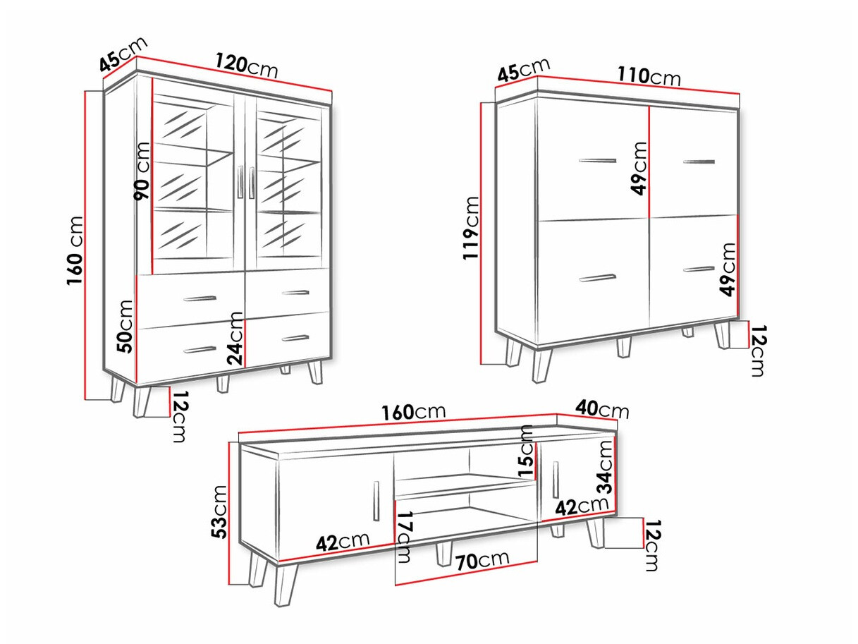 Les meubles de cette collection ont été conçus dans un souci de confort au quotidien. Le design est donc basé sur les éléments essentiels de la vie de tous les jours: étagères et tiroirs spacieux, armoires closes spacieuses. Tous les meubles sont montés sur des pieds de12 cm, ce qui donne à chacun d'eux une impression optique de légèreté, tandis que les poignées allongées ajoutent au design minimaliste. Les meubles sont empreints de l'esthétique nordique, mais ils s'adaptent aussi parfaitement bien aux éléments modernes tels que les étagères vitrées, entièrement vitrées, qui peuvent contenir de la vaisselle ou des souvenirs de famille.