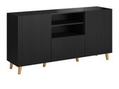 Une collection de meubles de style moderne qui donnera à votre maison une élégance subtile. L'accent principal des meubles de cette collection est les portes décorées de rayures structurelles. Le design du meuble est conçu sans poignées. Cette solution moderne vous permet de mettre en valeur le décor des portes de meubles. Les pieds en plastique gracieux ajoutent de la légèreté au meuble. L'espace sous les meubles facilite le nettoyage de la maison, car il est facilement accessible par les robots aspirateurs. Cette collection utilise du verre trempé, qui est plus sûr et plus résistant que le verre ordinaire. Les amants de la romance pourront profiter de l'éclairage LED intégré à économie d'énergie, qui créera une atmosphère chaleureuse dans la pièce. Et si vous souhaitez surprendre vos invités ou créer une image encore plus chaleureuse et romantique, nous vous suggérons de faire attention aux meubles avec cheminée électrique.