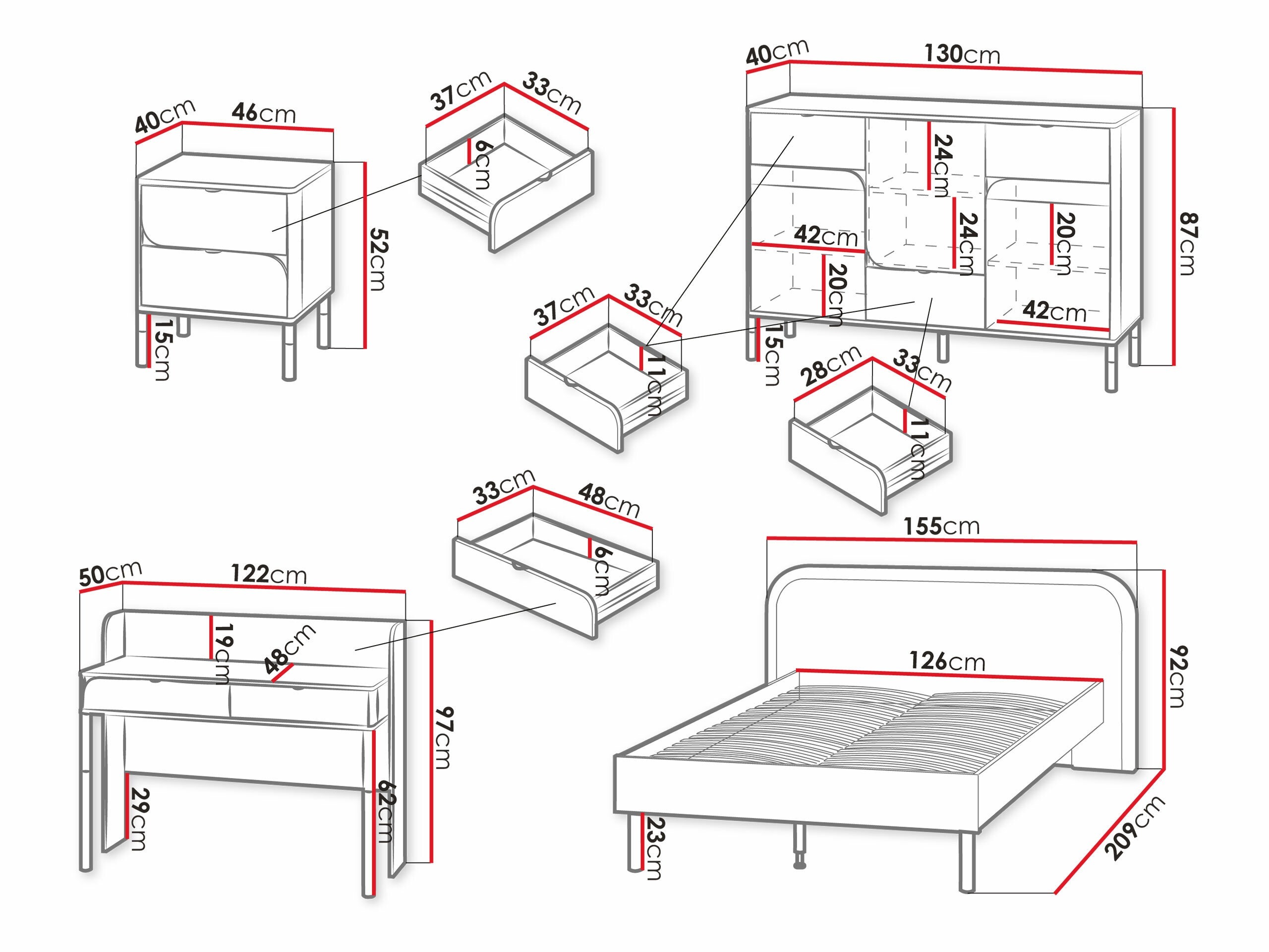 92 x 155 x 209 cm