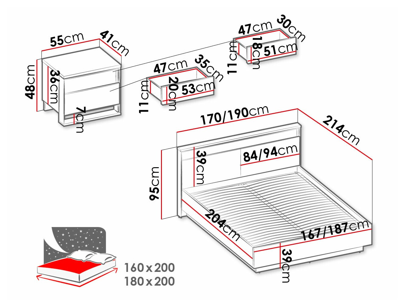 Dimensions du lit: