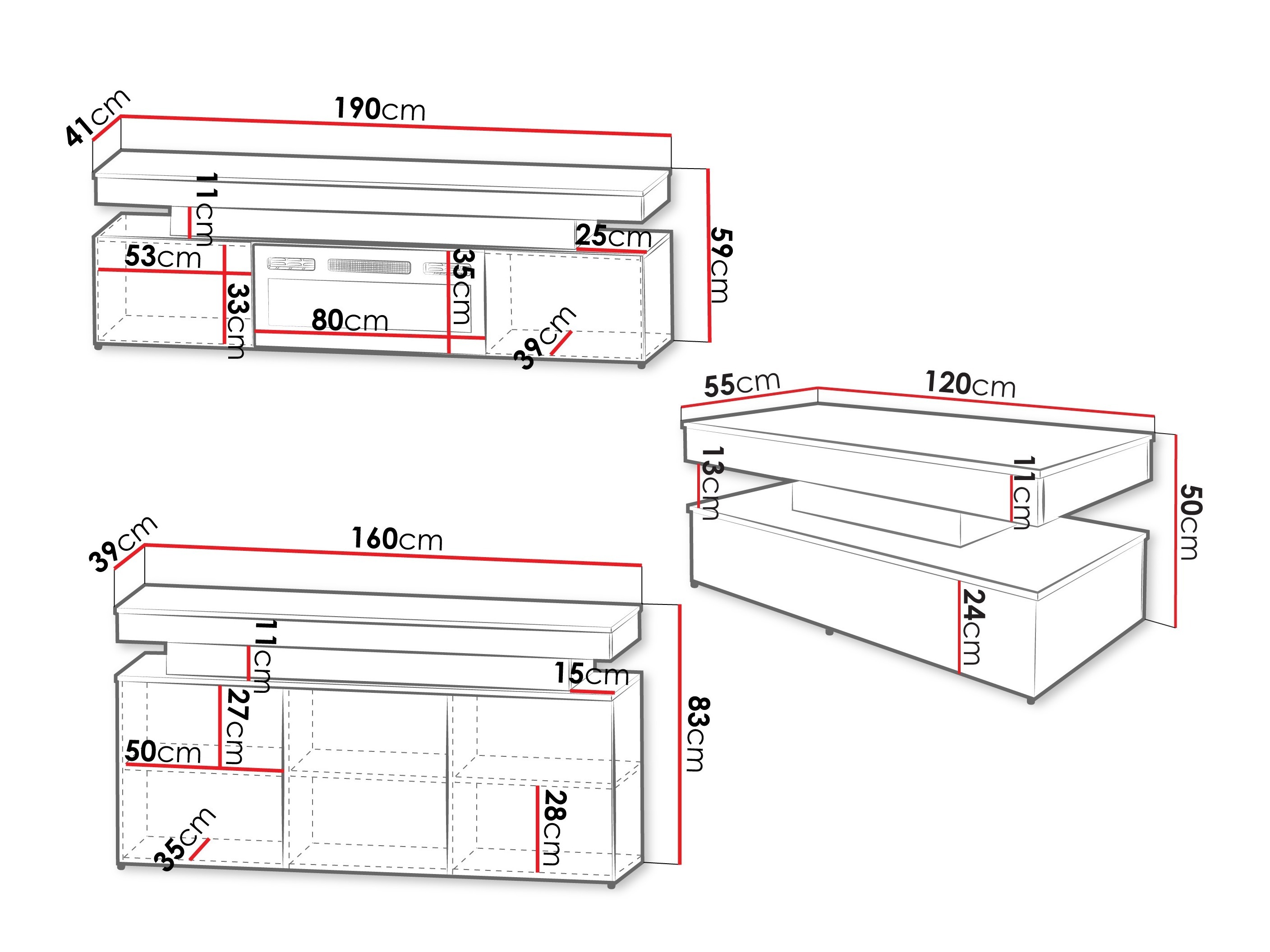 83 x 160 x 39 cm