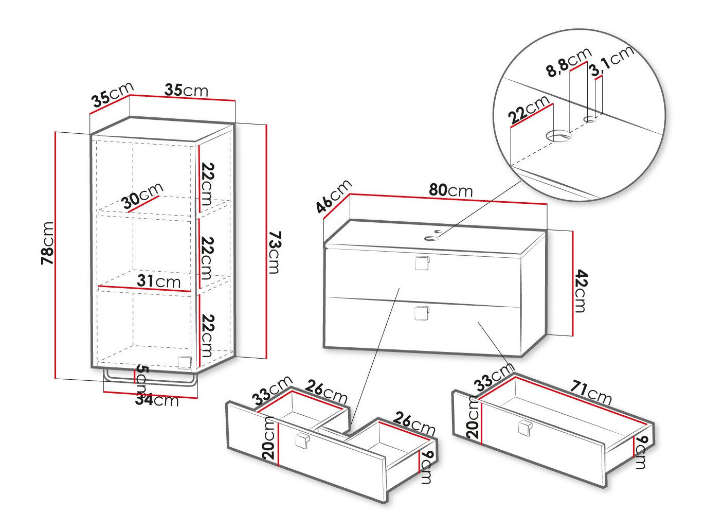 Dimensions du meuble-lavabo: