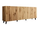 Vous avez probablement entendu parler que la beauté réside dans la simplicité. Cette collection est tout à ce sujet. Les façades des meubles sont dominées par des lignes verticales, qui se marient bien avec la couleur chêne «Wotan». Le design moderne n'est pas surchargé de détails inutiles, de sorte que les lignes décoratives verticales deviennent l'objectif principal de la collection. Les pieds de meubles noirs ont un aspect moderne et complètent parfaitement le design des meubles. Des meubles spacieux et de nombreuses étagères vous aideront à organiser vos affaires et à accueillir les choses les plus importantes. Des étagères réglables vous permettront de choisir l'agencement souhaité. La collection comprend des meubles avec un foyer électrique intégré. C'est une solution unique qui aidera à créer un intérieur plus confortable. Un foyer électrique est une excellente alternative à un foyer traditionnel qui vous permettra de profiter d'une flamme réaliste à la maison. Apportez simplicité et design moderne dans votre espace domestique et créez un intérieur confortable avec les meubles de cette collection.