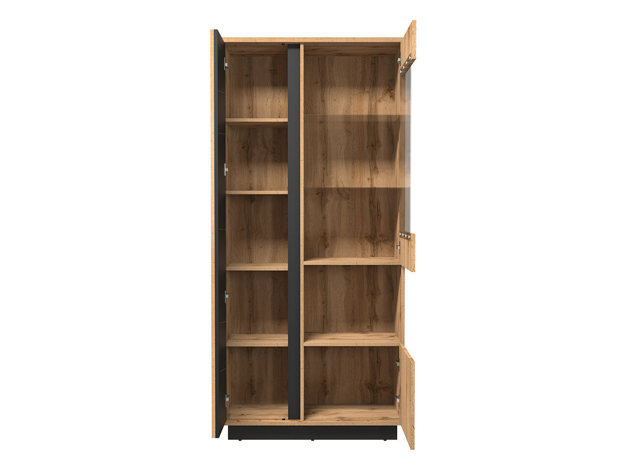 Cette collection de meubles contribuera à créer une atmosphère cosy et chaleureuse dans votre maison. Les façades décoratives et les poignées en plastique noir ajoutent du caractère au meuble et donnent du charme à l'ensemble de l'intérieur. Le mobilier de la vitrine est en verre trempé, plus sûr et plus résistant que le verre ordinaire traité thermiquement. Les panneaux MDF sont également utilisés dans la production de meubles, car ils sont très résistants à la rupture et à la flexion. Pour plus de confort dans la pièce, les meubles avec éclairage LED peuvent être commandés séparément, améliorant encore la chaleur et l'ambiance de votre maison.