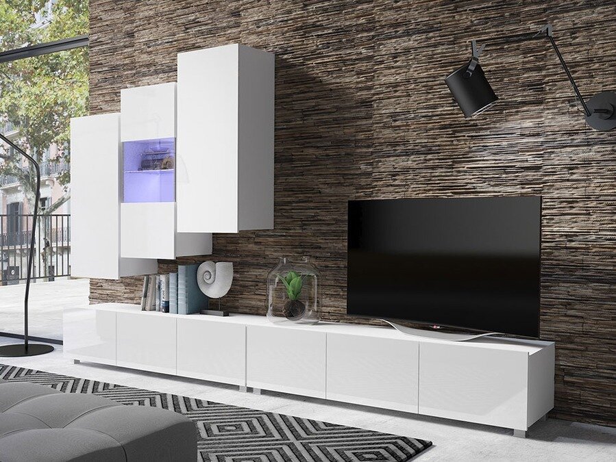 Ensemble de salon Tivdalu 133 (Blanc + Blanc brillant)