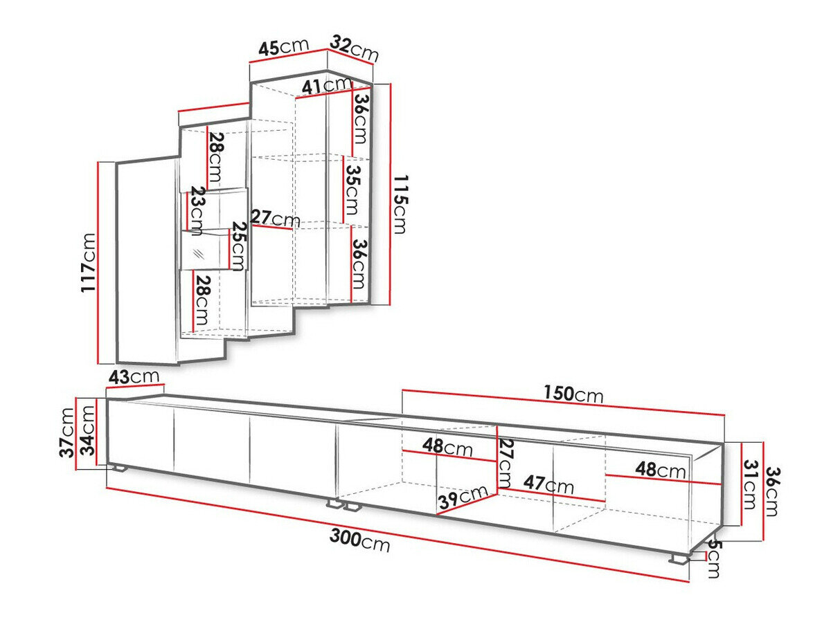 37 x 300 x 43 cm