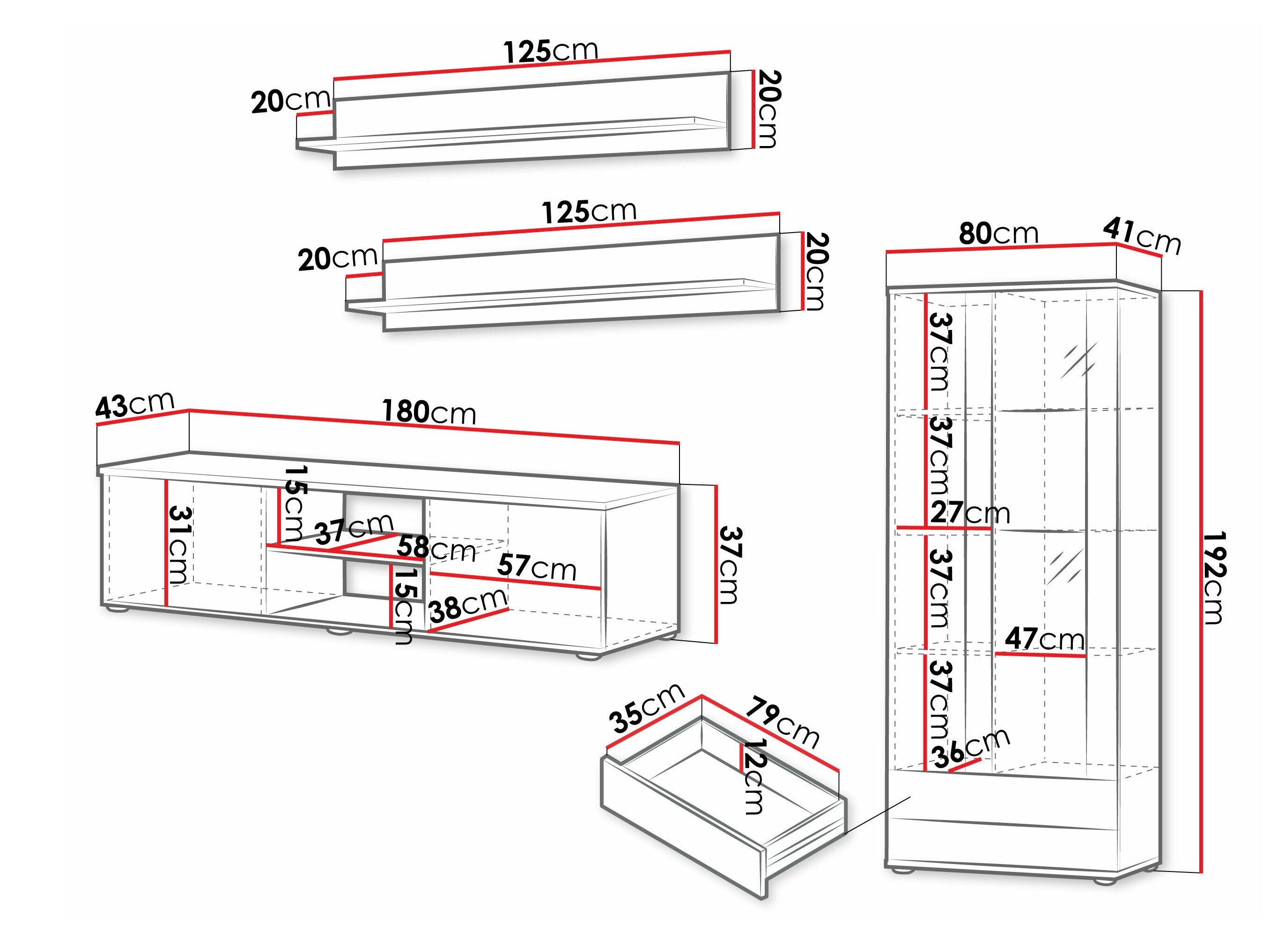37 x 180 x 43 cm