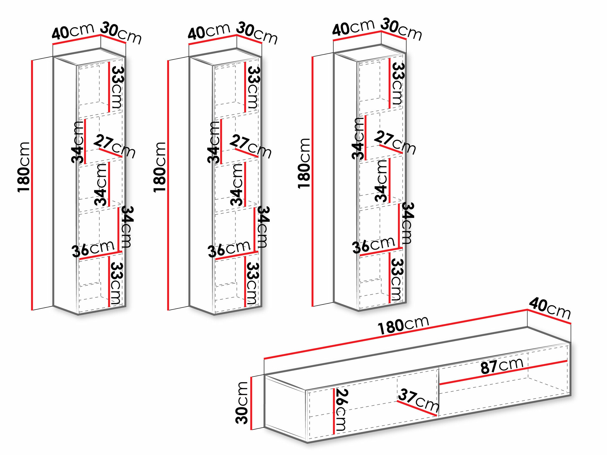 30 x 180 x 40 cm