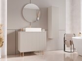Dans la décoration d'intérieur, ce sont souvent les détails qui créent un sentiment d'unicité. Ces touches finales donnent du caractère à un espace et contribuent à transformer une maison en un foyer. Cette collection de meubles repose sur ce principe. Ici, l'élégance subtile est associée à une fonctionnalité réfléchie, ce qui vous permet de créer un look cohérent et harmonieux dans les différentes zones de la maison. Les finitions rainurées et en lattes ajoutent une touche d'authenticité au design, tandis que les poignées en métal doré et les fonctions discrètes d'ouverture par effleurement sur certaines pièces contribuent à maintenir une esthétique propre et unifiée. Les hauts pieds métalliques sont conçus pour accueillir des aspirateurs robots, et une combinaison de rangements ouverts et fermés permet de faciliter l'organisation de la vie. Cette collection s'intègre sans effort dans les intérieurs classiques modernes, devenant un accent subtil mais saisissant dans la maison.