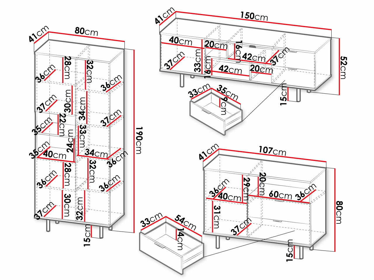 52 x 150 x 41 cm