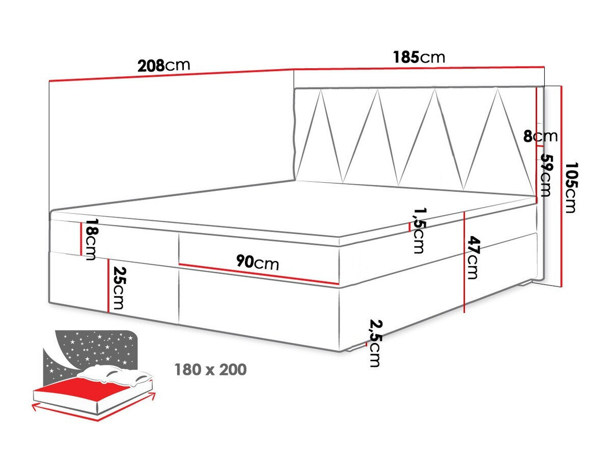 Dimensions de la boîte à literie: