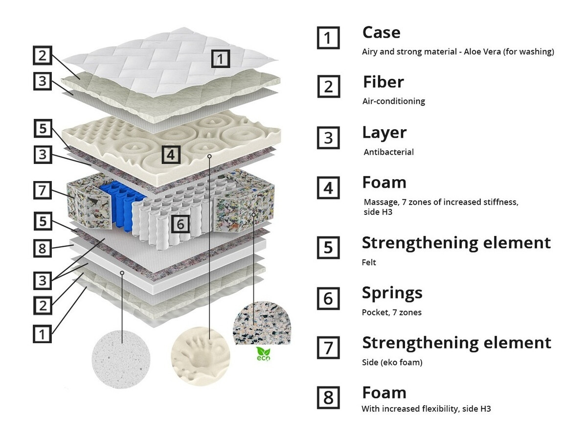 - 7 matelas à 7 zones de dureté
