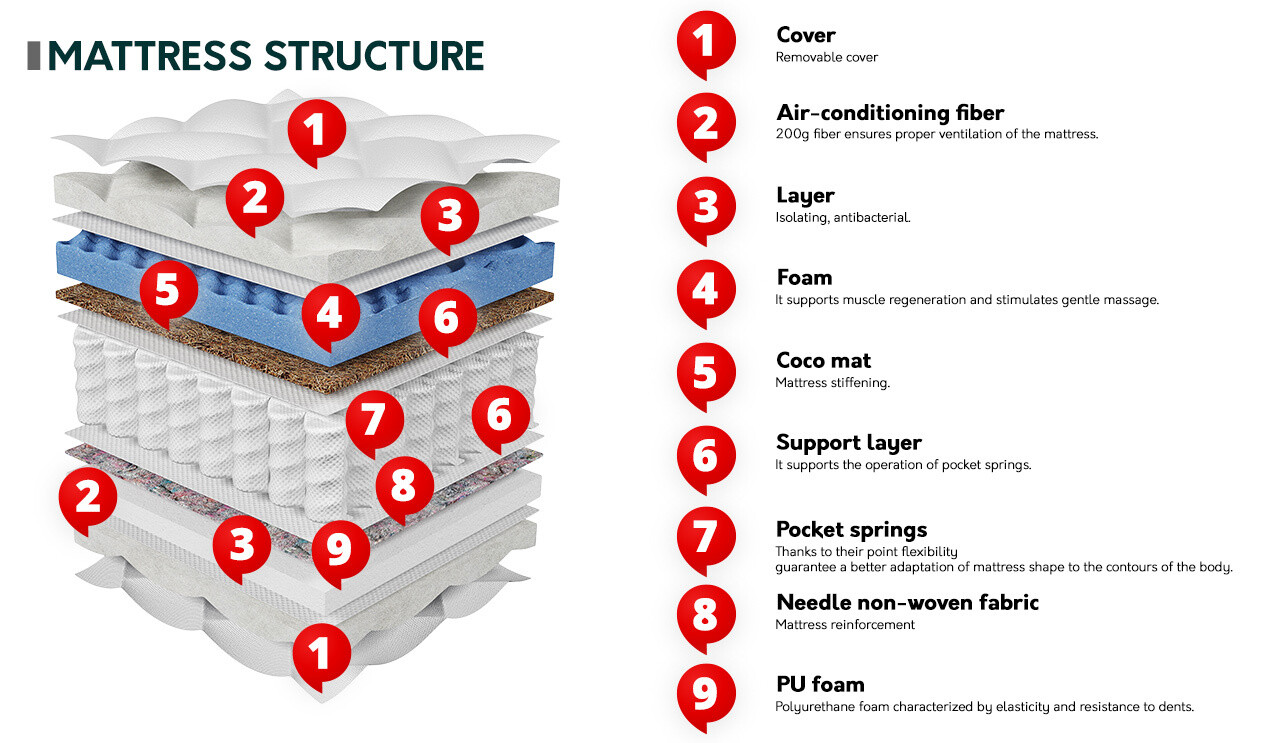 - 7 matelas à 7 zones de dureté