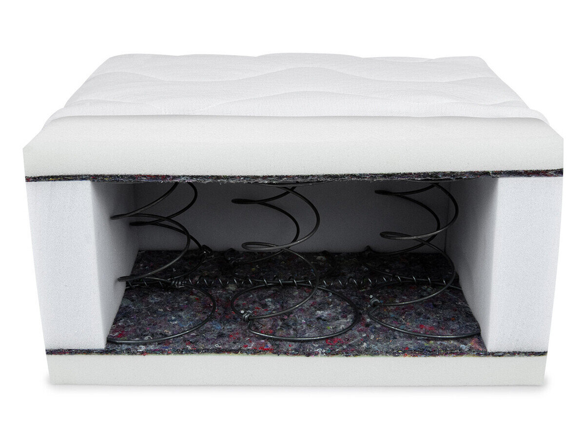 Il est également important de noter que les empreintes de matelas (jusqu'à environ 2 cm) ne sont pas considérées comme un défaut de fabrication. Lors de l'emballage, le matelas est fortement compressé pour assurer sa protection, ce qui peut entraîner de légères variations de taille. Une fois déballé et utilisé, le matelas retrouvera ses dimensions d'origine. En outre, en raison de l'emballage scellé, une odeur spécifique typique des nouveaux produits peut être perceptible au début - elle se dissipera au bout de quelques jours. Utilisez le matelas avec un sommier à lattes rapprochées. Les lattes amortissent et réduisent la pression sur le corps, tandis que les petits espaces entre elles assurent une bonne circulation de l'air et contribuent à prolonger la durée de vie du produit.
