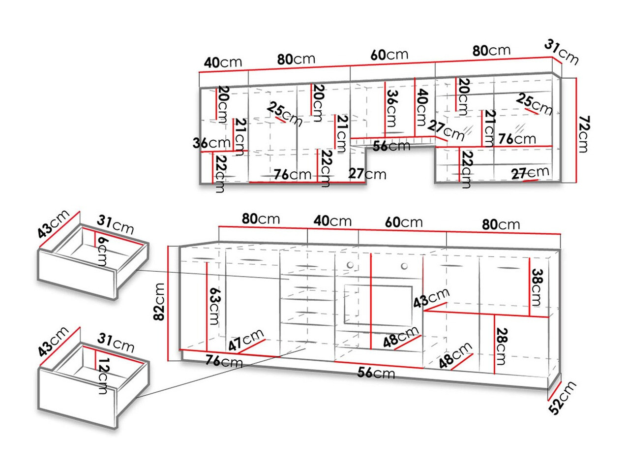 Hauteur de l'armoire à poser: