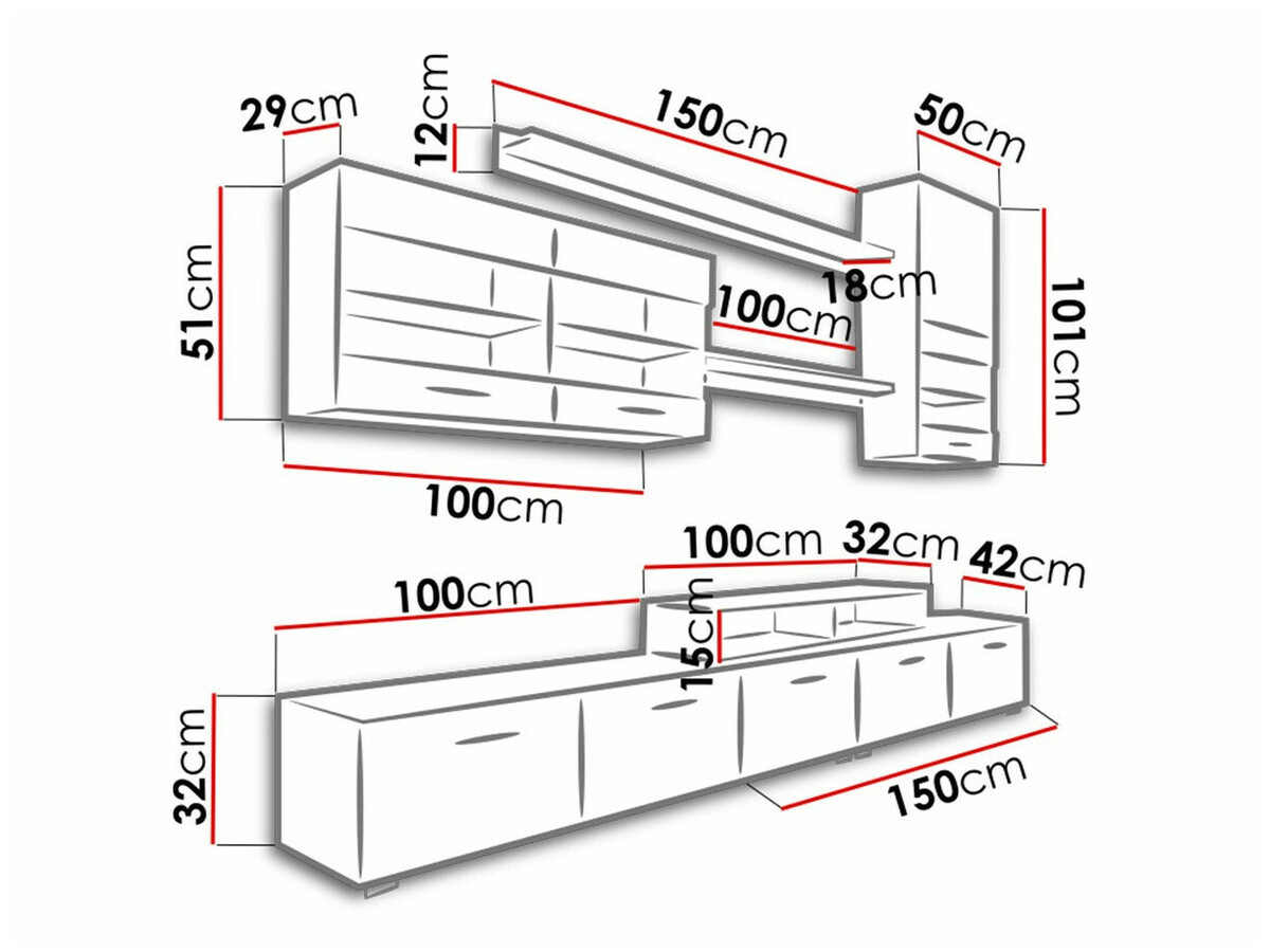 51 x 100 x 29; 101 x 50 x 29 cm