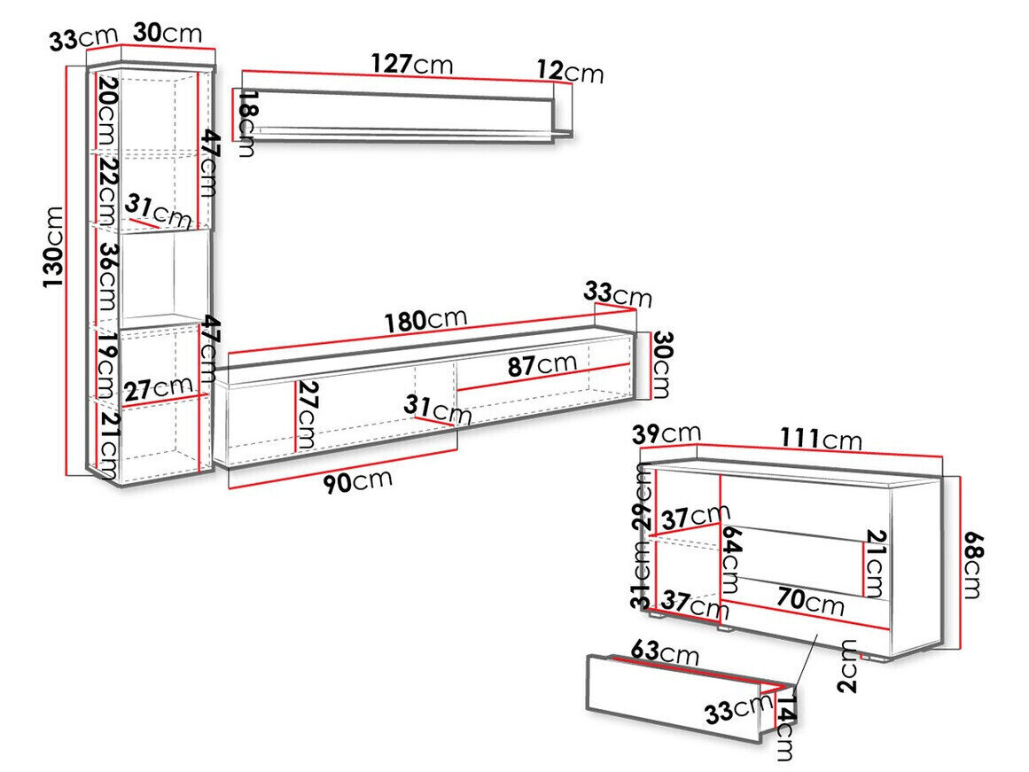 30 x 180 x 33 cm
