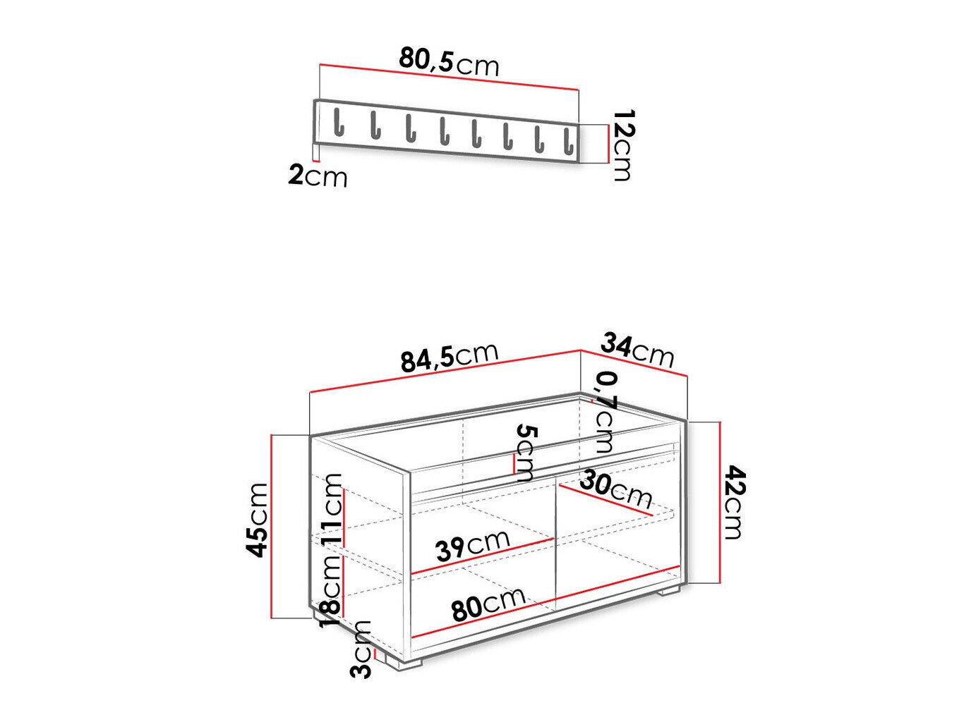 45 x 84.5 x 34 cm