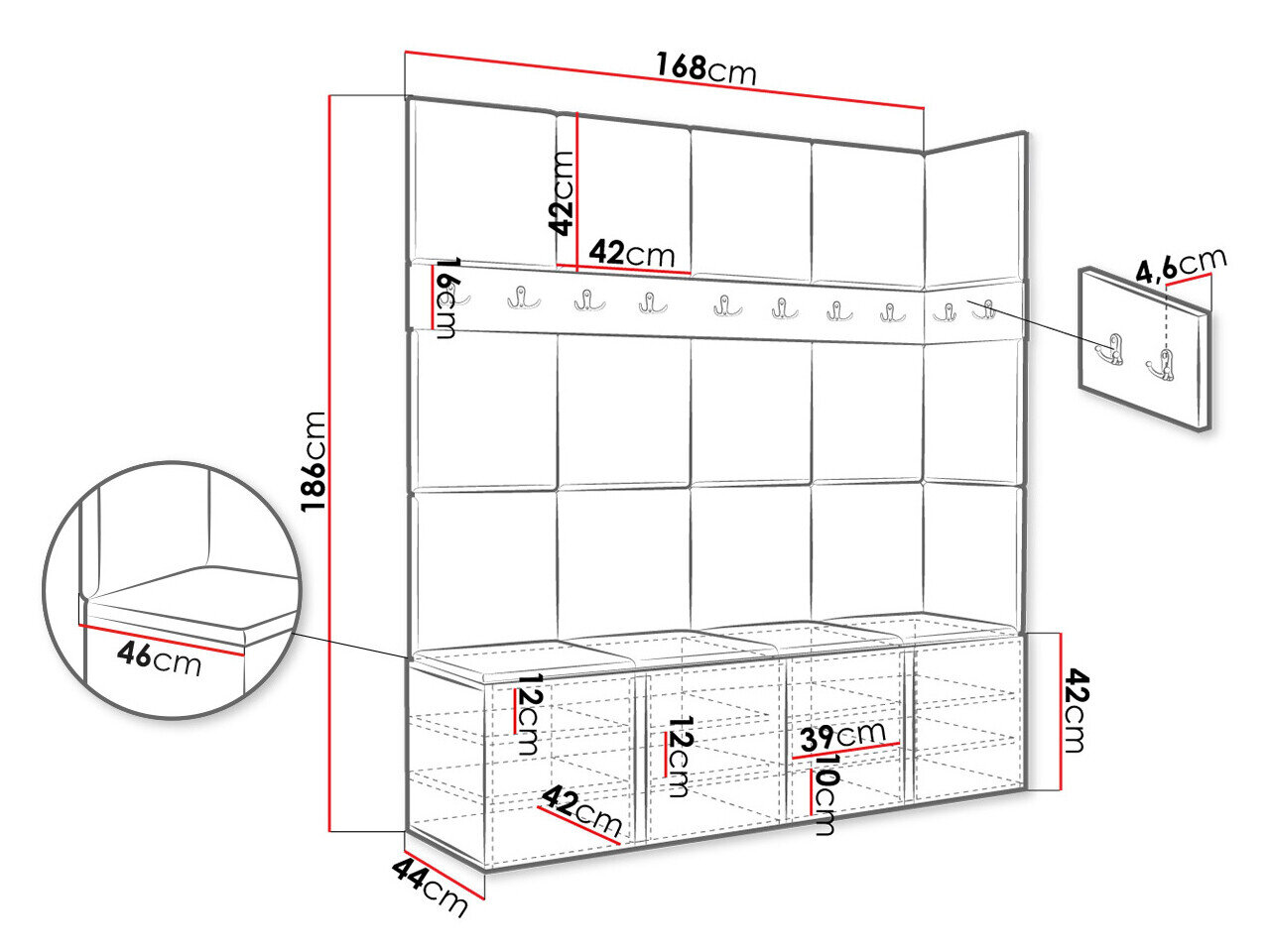16 x 168 x 4.6; 16 x 42 x 4.6 cm