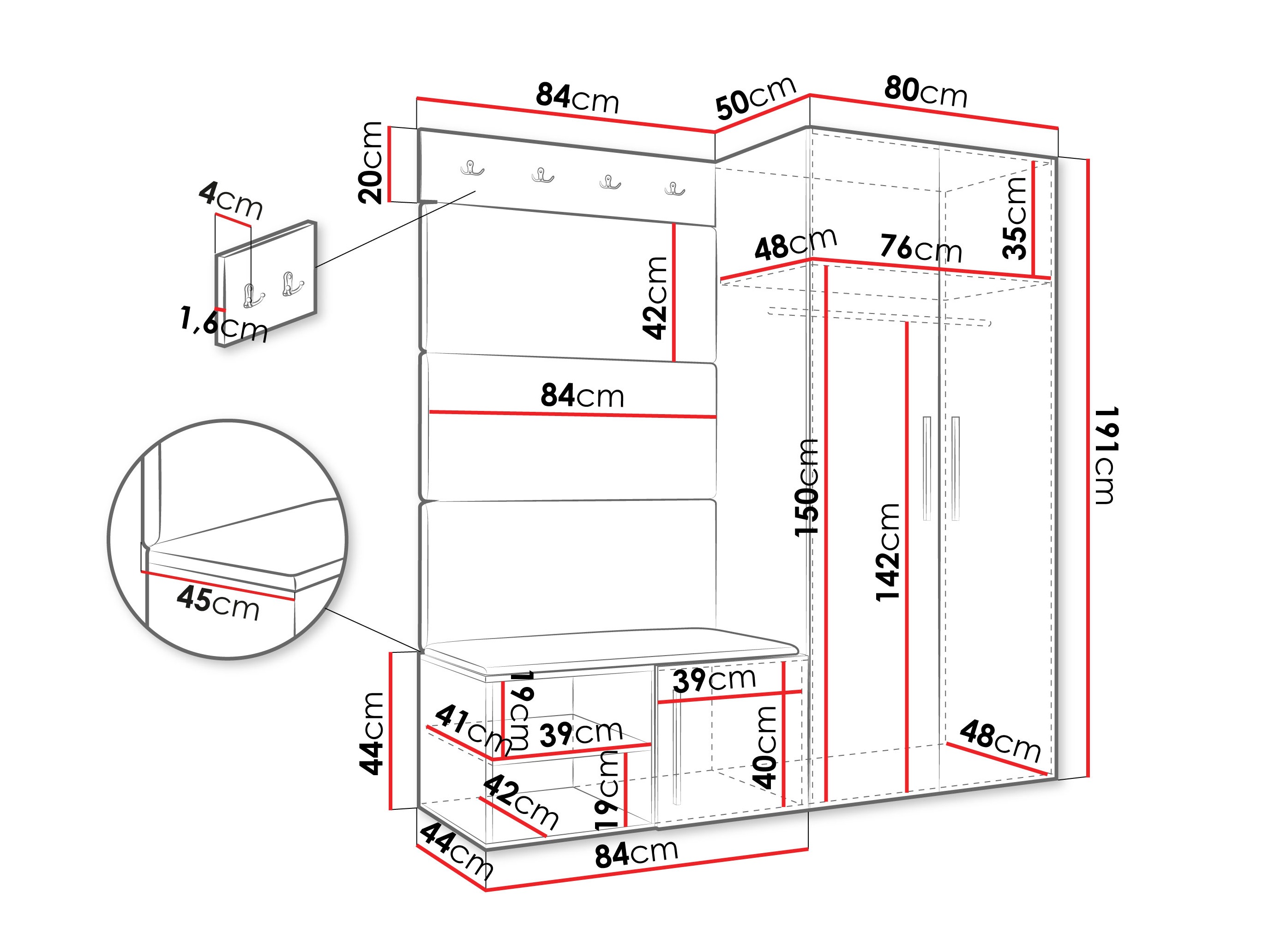 Dimensions du meuble à chaussures: