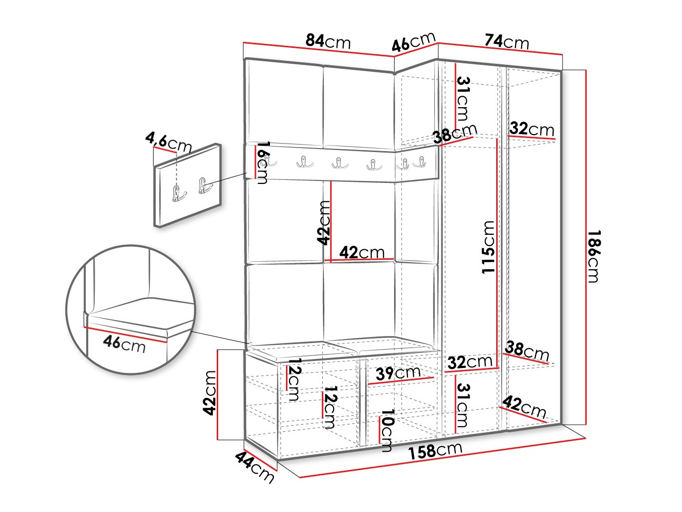 Expédition rapide. Installation simplifiée. Les draps pourraient être d'une qualité un peu meilleure. Le produit présenté sur la photo correspond à la réalité. Je l'ai converti et c'était très bien pour ça aussi. J'ai dû cacher le compteur de gaz et le compteur d'eau dans le meuble haut, mais il restait de la place sur les étagères. J'ai placé la partie suspendue dans la rangée supérieure, de sorte que des manteaux puissent également être placés dessus. Dans l'ensemble, je suis très satisfait, je n'ai pas eu à penser aux meubles sur mesure.