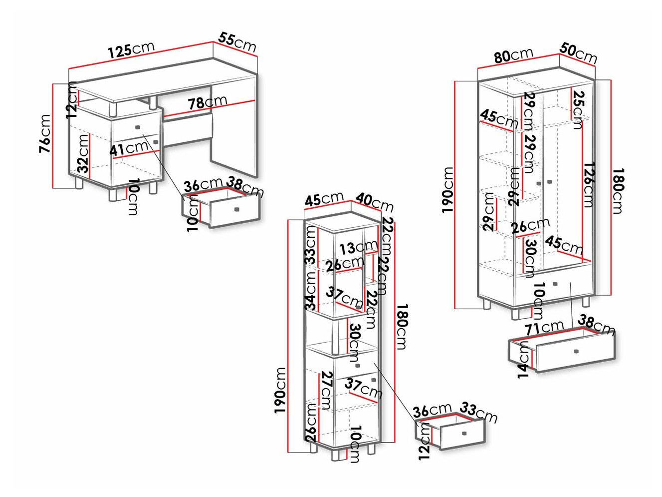 190 x 45 x 40 cm
