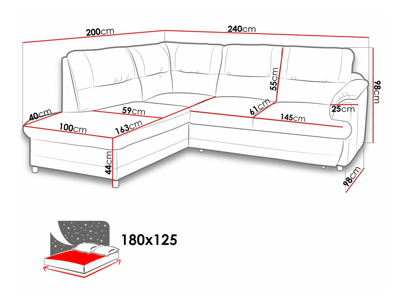 Dimensions de la boîte à literie: