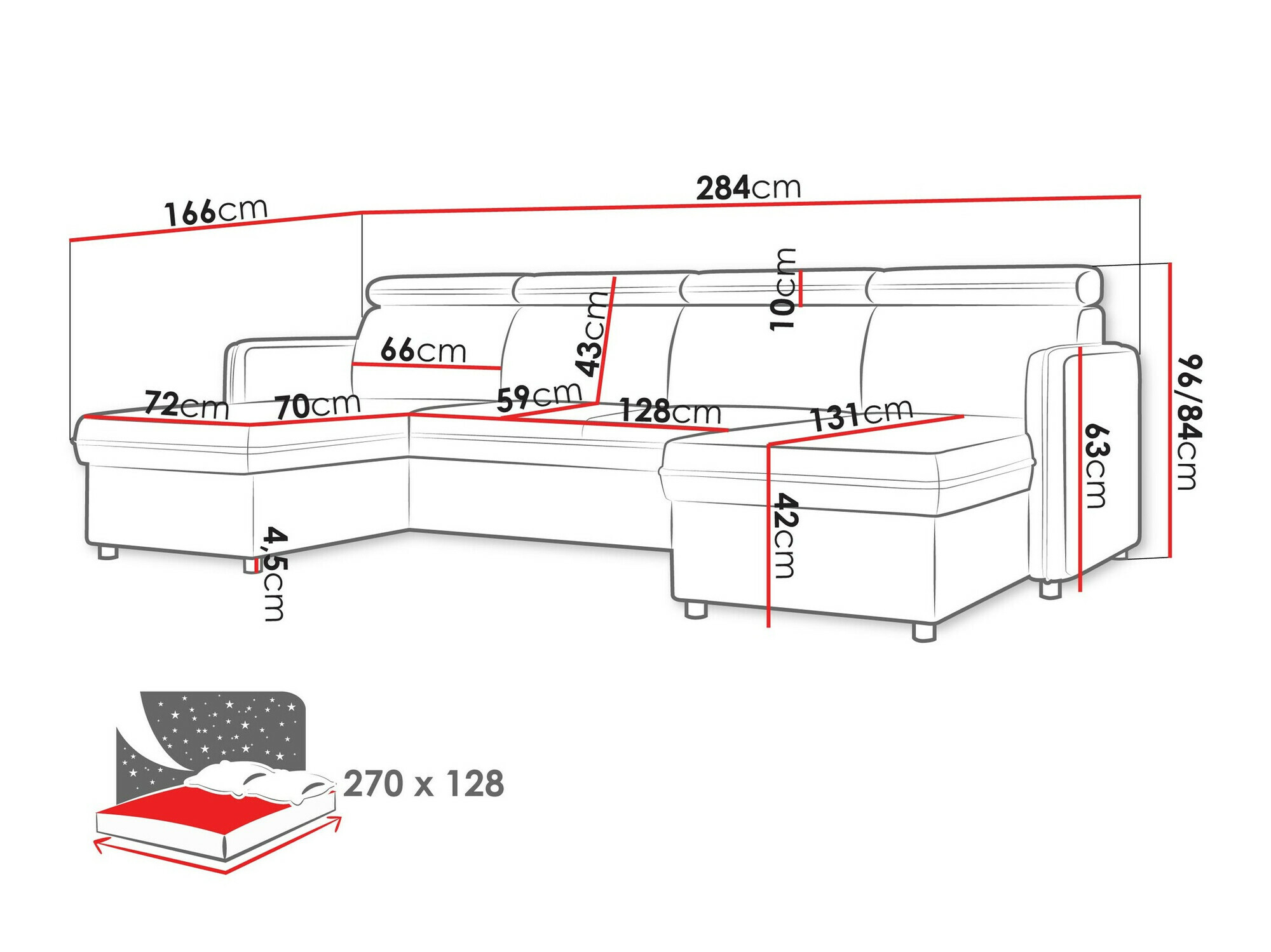 Longueur de la zone de couchage: