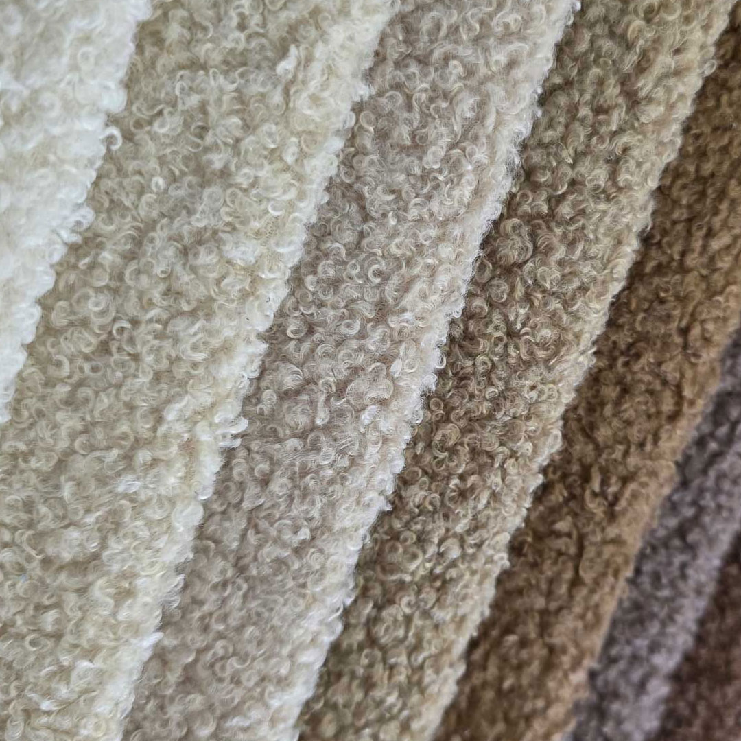 Un tissu doux et agréable, exempt de substances allergènes. Sa texture bouclée unique s'harmonise aussi bien avec les intérieurs scandinaves que modernes, ajoutant une touche chaleureuse et accueillante à n'importe quel espace. Afin de conserver l'aspect et la douceur du tissu, il est recommandé de nettoyer la surface uniquement à l'aide de produits nettoyants doux spécialement conçus pour les tissus d'ameublement.