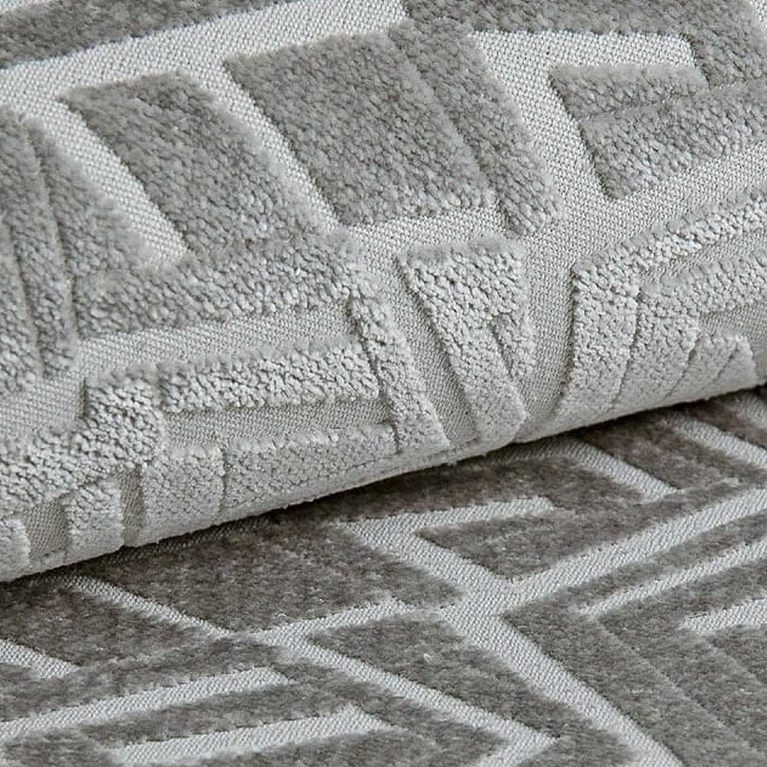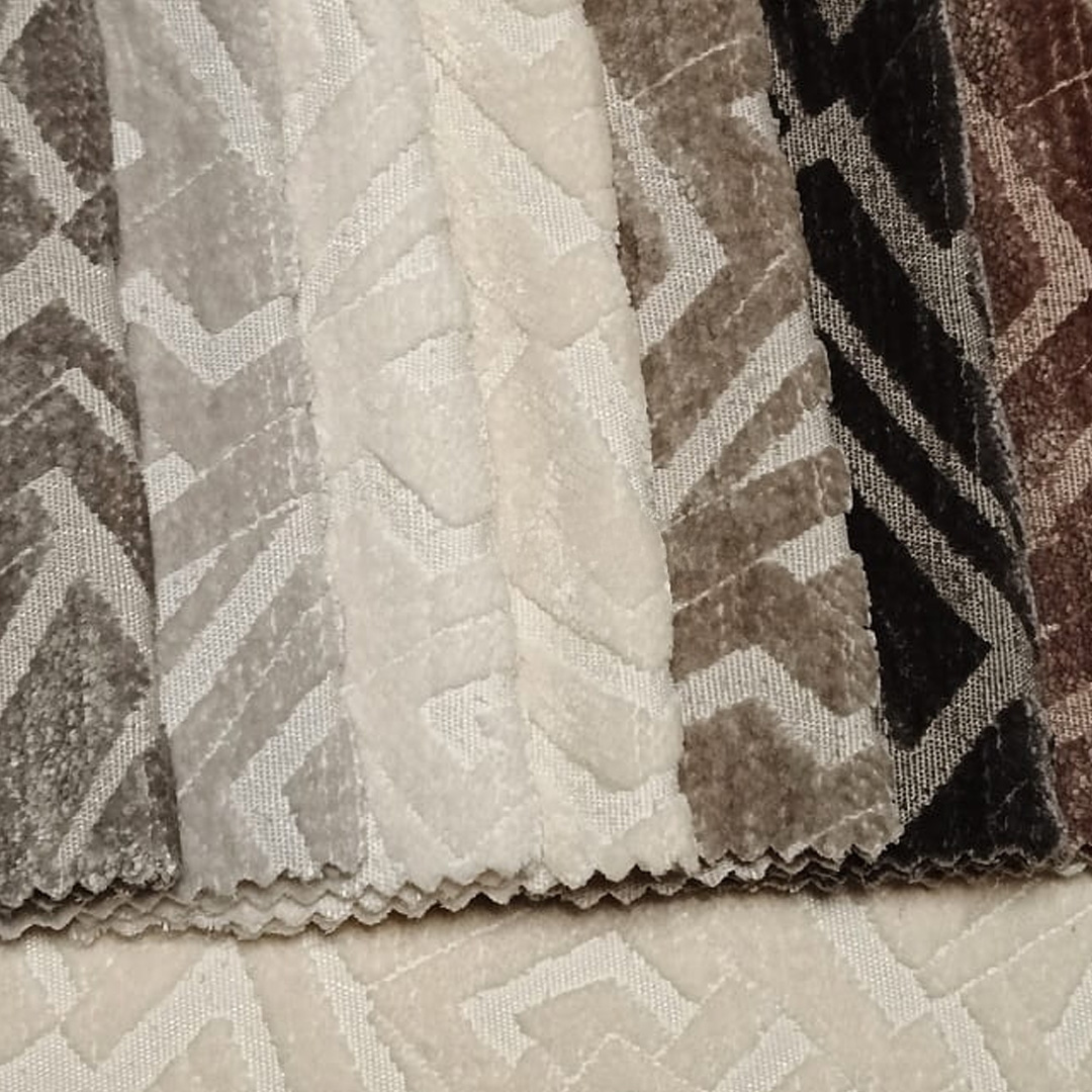 Un tissu décoré de motifs géométriques en relief et à effet 3D, ce qui en fait un accent idéal pour rehausser n'importe quel intérieur. Pour un entretien optimal, il est recommandé de nettoyer la surface à l'aide de produits d'entretien doux spécifiques aux tissus d'ameublement.